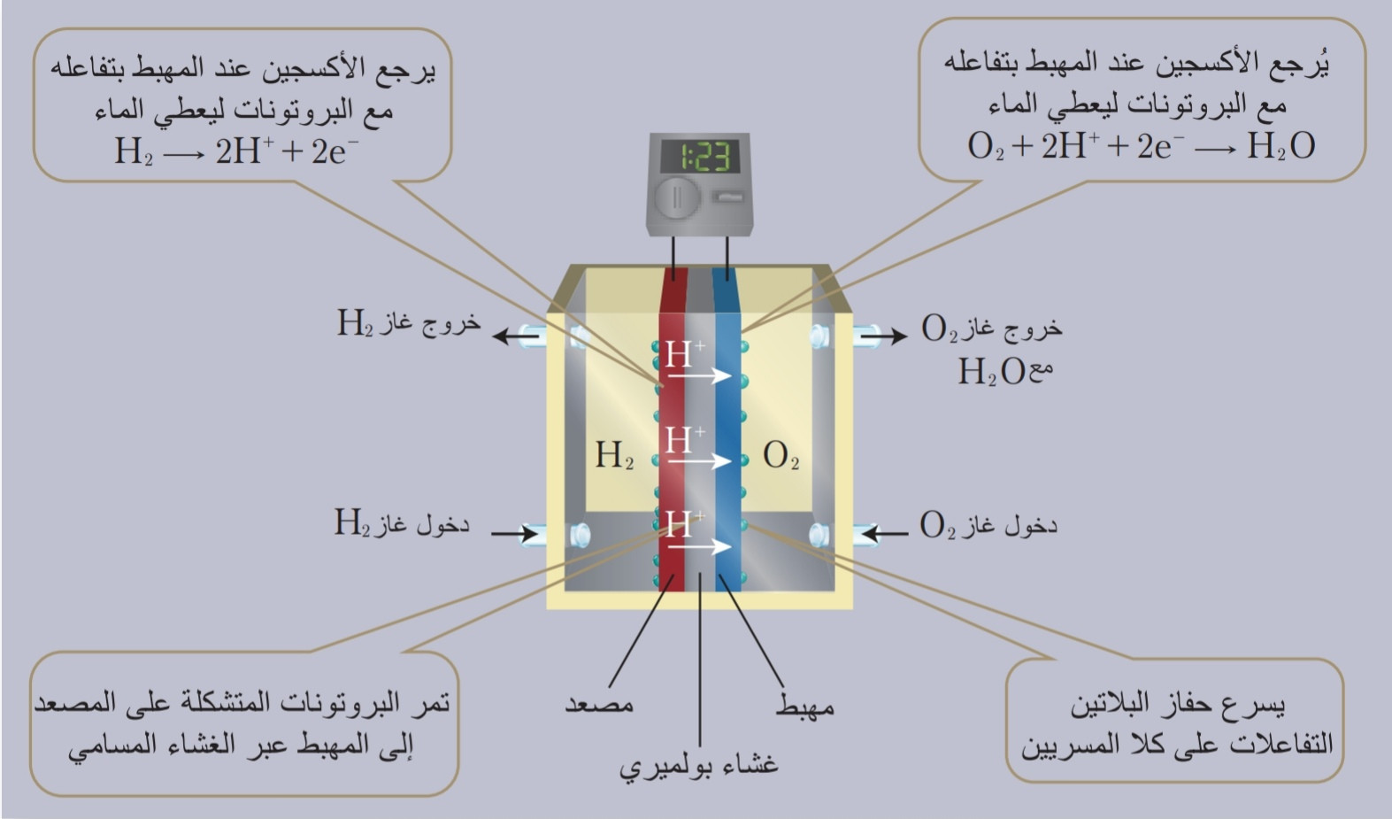 | السؤال: خلية الوقودالهيدروجينية صديقة البيئة |